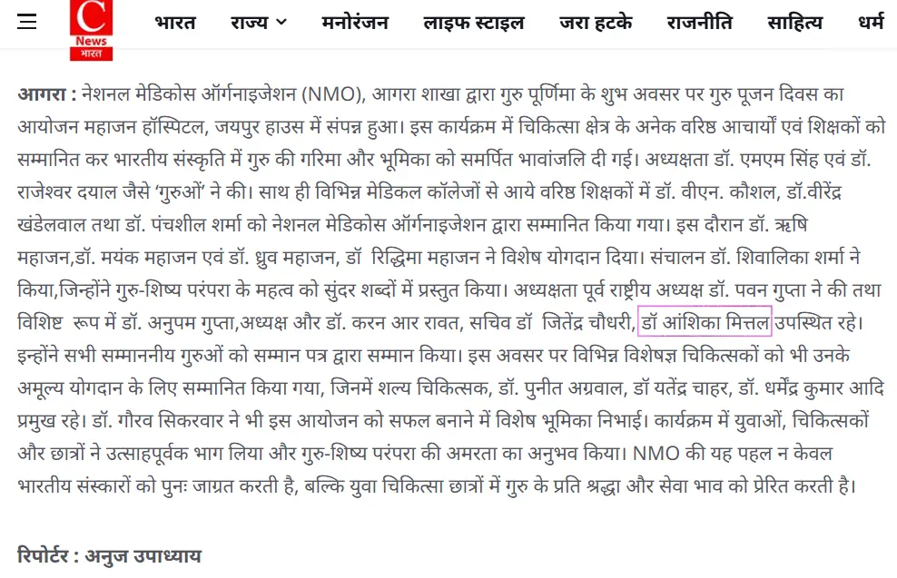 Honoured to be a part of the soulful celebration of "Guru Pooja Day" organized by the National Medicos Organization (NMO), Agra on the occasion of Guru Purnima.